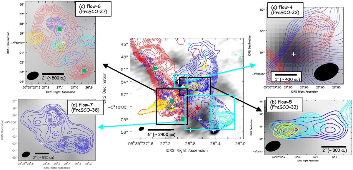 Figure 3: At the top HOPS-64, at middle east HOPS-108 and south west VLA16.